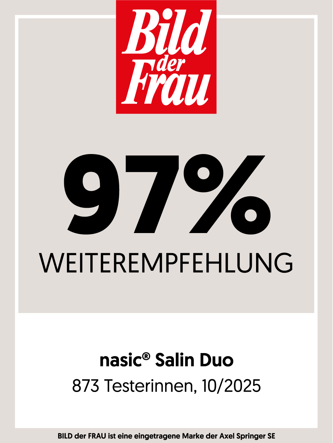 nasic® Salin Duo ist ein natürlich befreiendes Nasenspray mit Duo-Effekt: